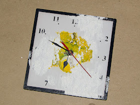 Теперь моя любимая часть: выбираем декор и раскладываем его на часах. В своей работе я использовала чип со словом "TIME", фоновый чипборд "Кружки", набор чипборда "Шестеренки" от фирмы Family. Негатив от шестеренок так же не остался без внимания.