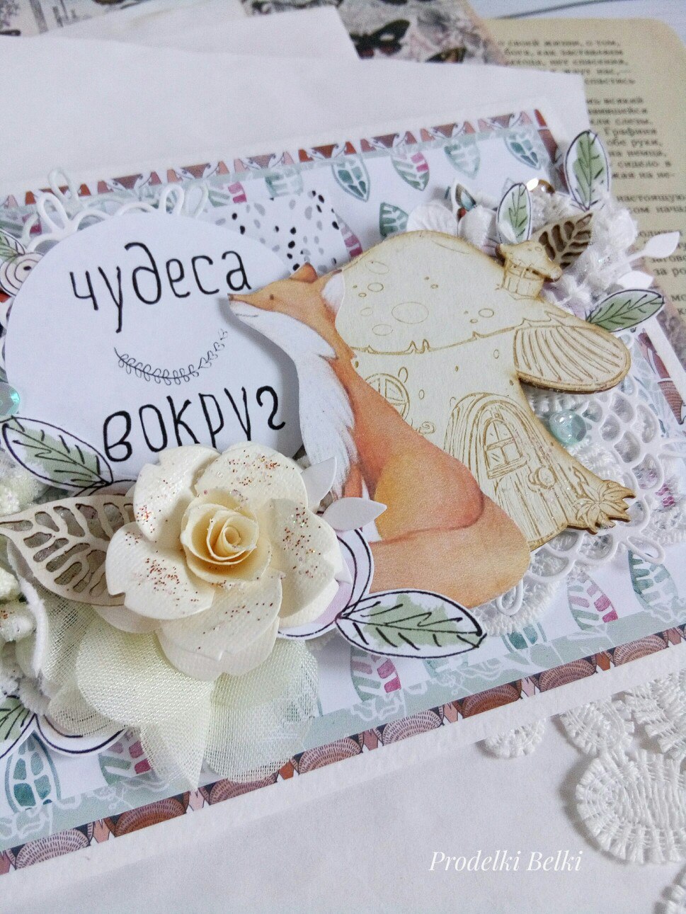 В работе использовала бумагу от Артузор "В стране чудес", вырубку пионы, тысячелистник; чипборд от Family Chip